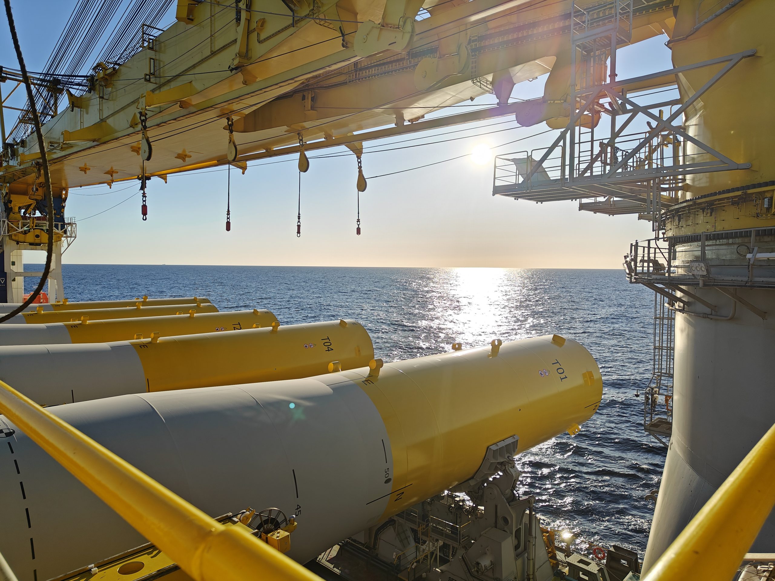 It’s a very large ship, so it doesn’t roll as much as you would think. But when you’re heaving one of these monopiles, which weigh more than a thousand tonnes, the ship kind of shifts a little bit