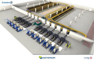 Actemium Lyon Logistics in collaboration with a central supply company deploys an Interroll Crossbelt Sorter for the major supermarket chain, E. Leclerc, in their new processing building for fresh produce.
